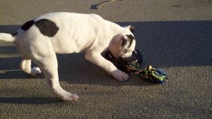 The best thing about this week and the addition of the tire toy shown here is that lunging and nipping are slowly decreasing.