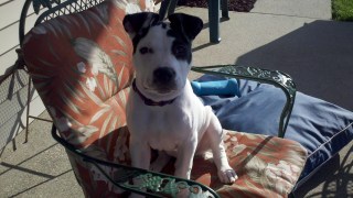 Ray being a December baby has not been typically excited about spending much time outside until lately but we try to be outside as much as possible when the weather permits. These past two weekends have really been enjoyable for him as I’ve noticed a new reluctance to come inside. Since we spend so much time on the patio I wanted to find a nice cushion for Ray as well so that I could have him nearby without having him lie on the concrete. I actually scored big time with a weatherproof cushion that I found at WM for under $30. It’s even big enough and strong enough that he’ll be able to use it for many years (I hope.)