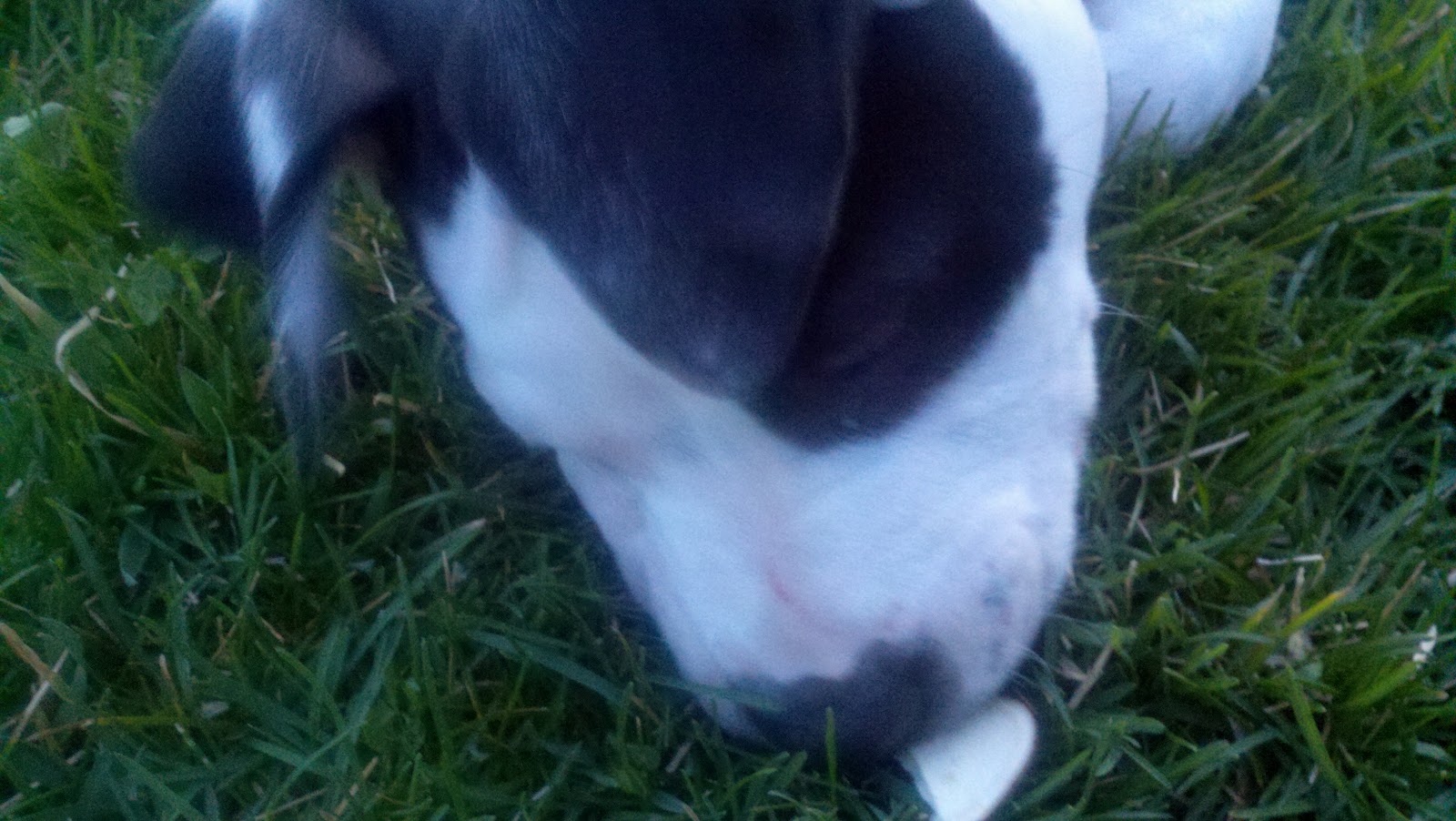 Puppies play rough. I’m not talking about Pitbull puppies specifically, just puppies in general. When they are still with their litter, they learn certain boundaries of play like when to back off and when to continue with the help of little yelps and other body language signals. After being separated from the litter, continuing with the yelps helps the puppy know and learn new boundaries with their new human pack. While I find this continued training to be slow going, I am also finding it to be successful. When Ray was much smaller, and his teeth were like the jagged metal blade of a table saw, his bites were pretty potent and we made sure to keep lots of chew toys handy. Now, the biting/gnawing is becoming infrequent and much softer allowing for a nice healing period for my hands and feet. I can tell when he’s getting tired because that is in direct proportion to the pressure and frequency of the nips he administered. Last night I actually said to him, “You’re getting cranky, it’s time for night-night.” Upon hearing that, he ran to his crate door and waited for his three sugar snap peas. (Bedtime snack.)