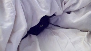 Lately, Miko has taken to crawling in between the sheets in our bed after we’ve gotten up.  Walking into the room to get dressed, one might here a little squeak followed by the contented buzz of the little purr box.  I don’t know why he has after three years begun to enjoy life in the blankets, but it is certainly cute.