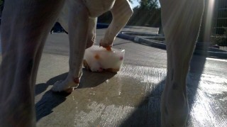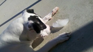 As I was working away at my new job, a nice big crack appeared. I decided the big ice cubie was like Kong-Kong, I picked it up and smashed it on the ground over and over…and it worked! I had a chunk of ice cubie that could chomp and crunch on.