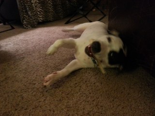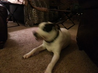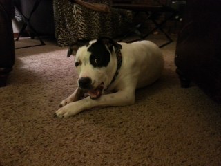 Bully sticks are a highly favored treat for Ray and a twelve inch bully can last almost 15 minutes if we’re lucky. We use them mostly at the beginning of a football game since they tend to settle Ray and get him more focused. We’ve also been favoring the frozen stuffed kong, using the recipe that Pitlandia posted the other day. I had been freezing Ray’s kongs, but not using a lot of the mix-ins so he was clearing the contents pretty quickly. Ray loves his kongs, we’ve been using them a lot more for feeding, though we do still use his bowl as well.