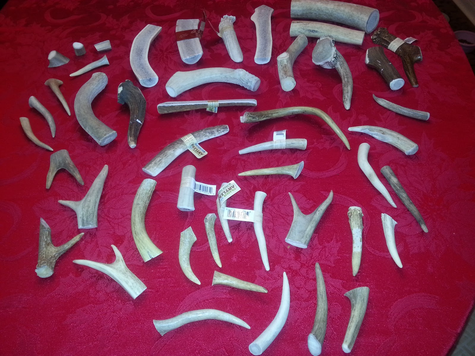 She laid all of these beautiful antlers out on the dining room table where I could see them and hear them making clinky sounds.  And she let fat kitty Miko inspect them.