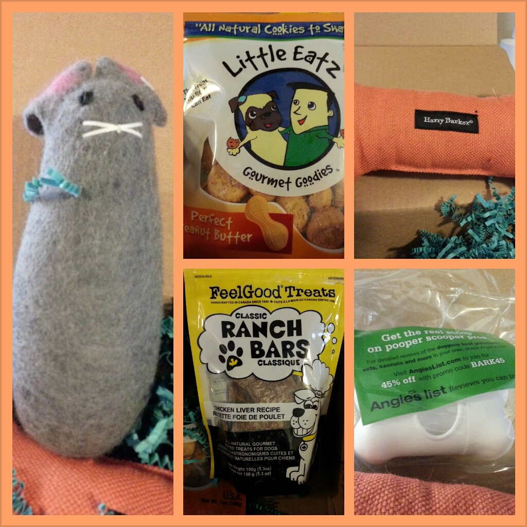 This month’s BarkBox was a huge success!  (And by success, I mean the stuffies lasted more than a few minutes!)  We have loved our subscription so far, because if you consider the treats and stuffies you get, plus any other bonuses like coupons and such, you get a box in the mail every month, new treats to try, a new stuffie or two to keep your pooch busy and access to products I might not have tried otherwise.