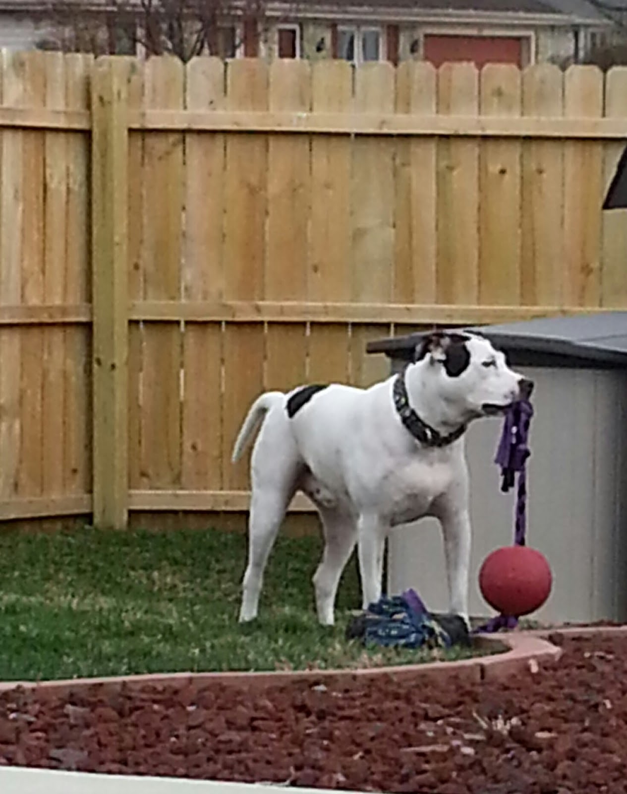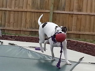 When he starts a-swinging his Jolly Ball in circles he looks quite a bit like a bull trying to shake off a rodeo rider. He swings it around his head, bangs it onto the ground and swings it around again.