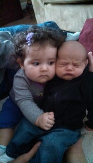 The baby is generally very genial but for some reason this picture of her with her little cousin just made me laugh.  The moment I saw it, I said, her little face reminds me of someone and Asia saw it right away as well.  How about you?  Do you see it?