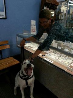 Like I said, while Mom isn’t an animal lover, she doesn’t hate them either, so some pretty interesting things happened. Because she wasn’t all super excited to “pet the puppy,” Ray was greeted in the way I encourage everyone to greet him, which is by ignoring him until he is comfortable in the situation and asks for attention. Since I always try to keep Ray on his best behavior, I was loaded down with treats and asked for several behaviors such as “sit,” “touch,” and “down” in order to keep some focus, so Mom mentioned that Ray is really well behaved, which was great to hear. She even offered, at one point, to hold his leash for me.