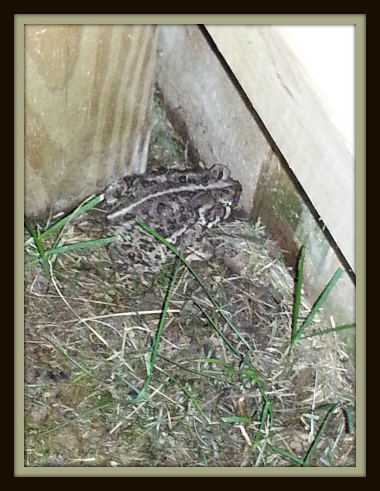 Aww! I thought it might have been a mouse! Luke likes to stalk the mice in our yard. (http://waywarddogs.com/2012/07/23/mousing/) I wish we had some frogs and toads!