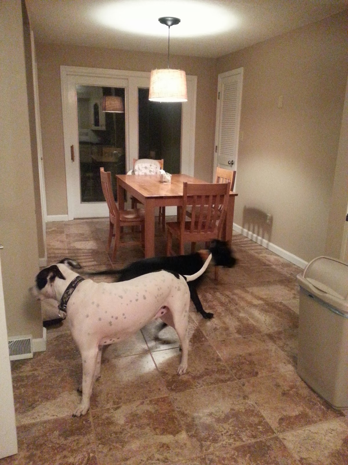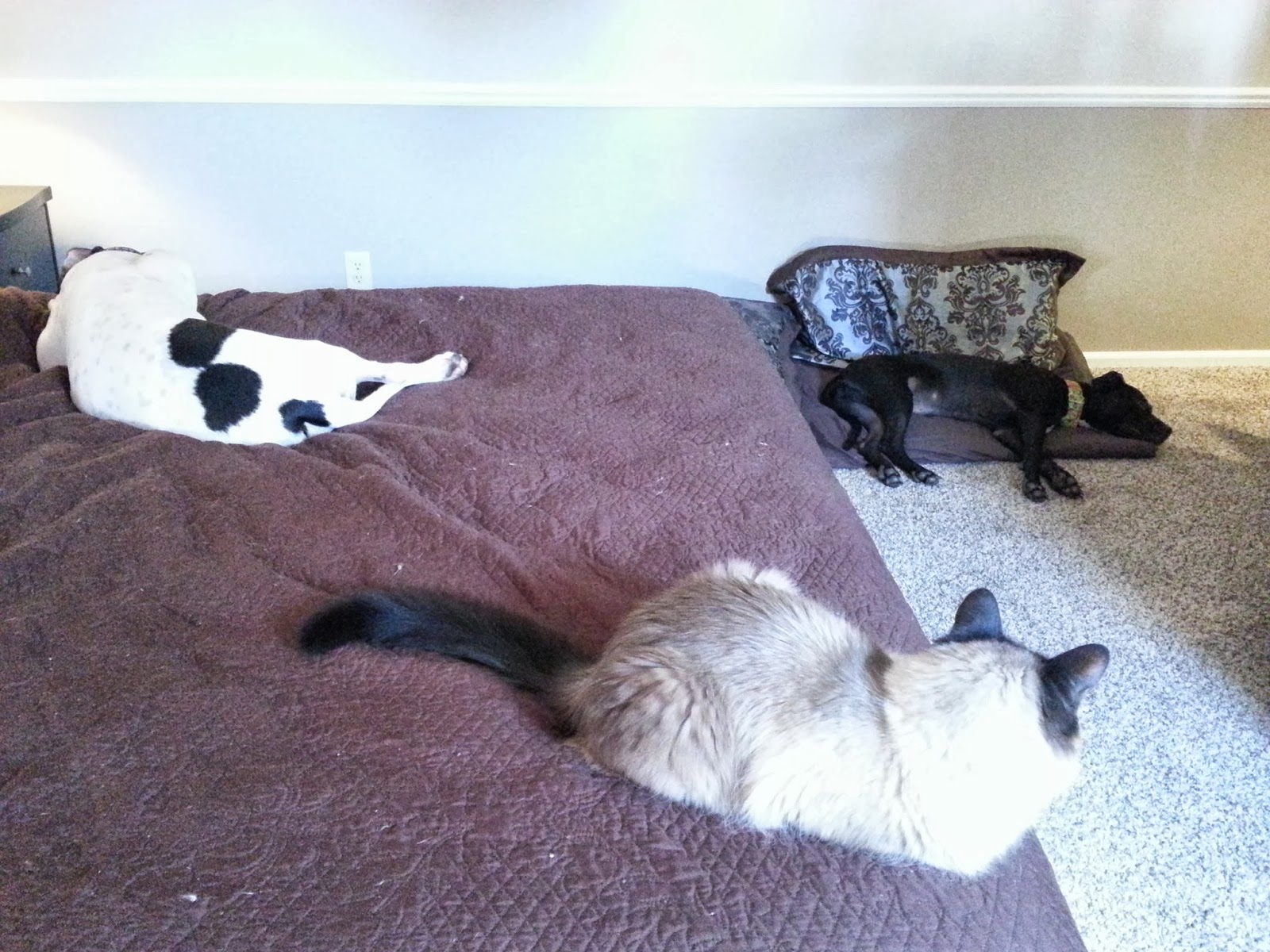 At this house, Juli-bean still has a crate set up but that is now only for the work day and we started off with both boys sleeping in our room. It worked out better than we had hoped for at first. Julius had a little area on the floor that he nestled into and Ray slept on the bed with us.