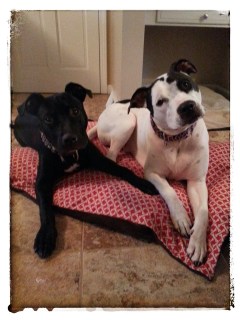 Along with those magical words, Breakfast and Dinner, they boys know quite a few more words for food. Treat, cookie, cheese, and bully stick are some of the top ones, though Ray also knows peas, jolly ball, tug-tug, and antler. Ray also knows all of our animals by name while Julius knows who Julius is.