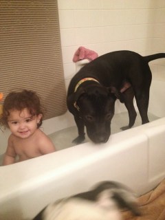 Ju-Ju now just jumps in whenever he feels the need. I don’t think the baby minds at all.
