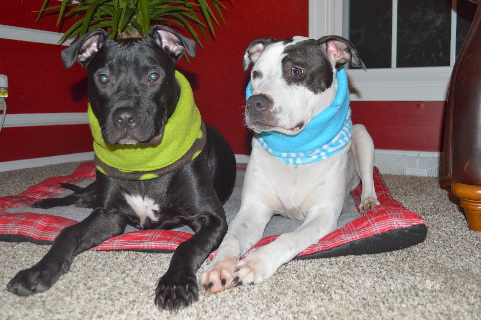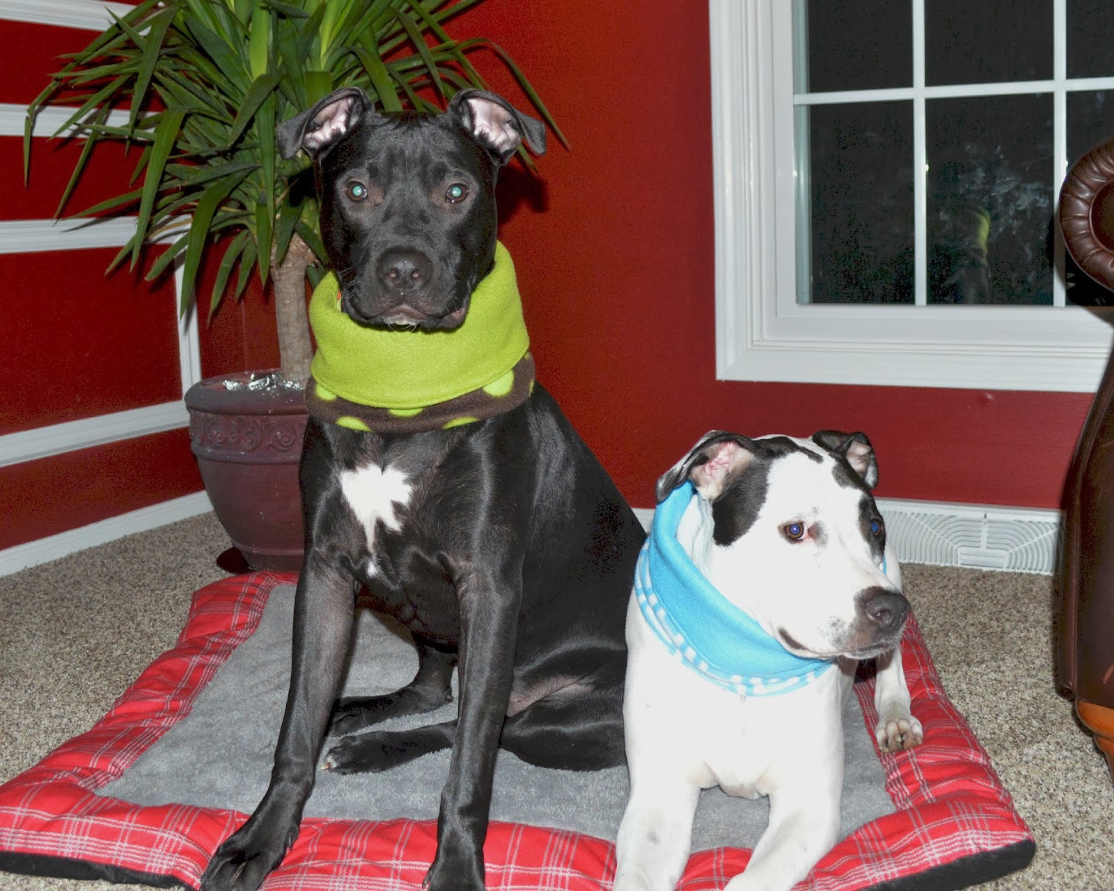 So, while I’ve been wanting fleece snoods for the boys, I’ve been hesitant to spend the money on those. After all, I have boatloads of shirts and jackets that just don’t fit them, so I just waited and secretly hoped that Lamae Designs would begin making snoods. In case you’re not familiar, Lamae Designs began making incredible looking tutus for dogs then ventured into collars and bow ties. She has always given back to rescues in time, financial support and as a foster parent. In fact, she fostered then adopted Ray’s littermate, Dahey.
