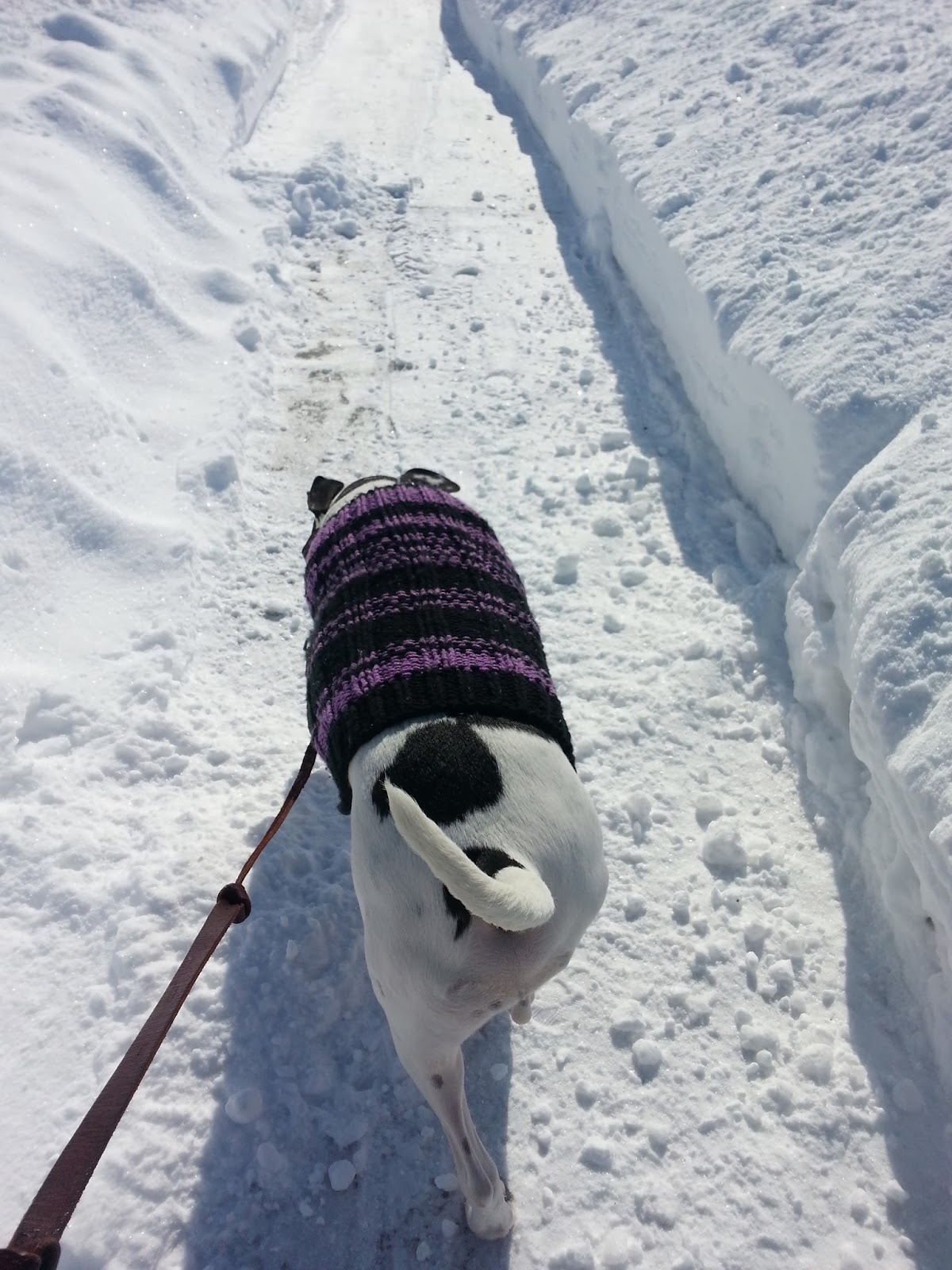 With Julius going to day-play so successfully, I wanted to do something special for Ray. Day play for Ray isn’t off the table, but I’m considering a few options so rather than just talk about how much we need to go walking, I decided to just do it. I drove home for lunch noting that the sun was shining and the air wasn’t unbearably cold, so as soon as I arrived home, I grabbed the leash and Ray’s Tiennot Sweater and off we went.