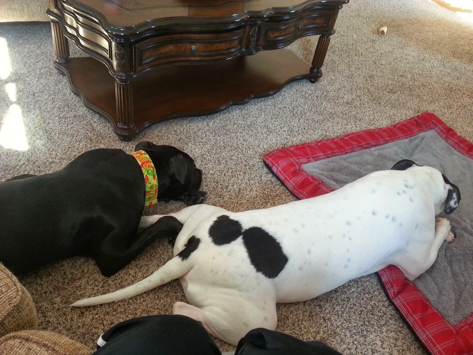 I’m pretty happy to report that since the initial weekend, we’ve limited his movement enough that he hasn’t limped in nearly two weeks. He is allowed to go upstairs at night for bedtime and down for the daytime. He and Julius are not allowed to rough house (of course) and they do separate potty breaks outside. Ray and I haven’t had our walks since that weekend, but I’m thinking we may start very, very short walks next week and see how it goes.