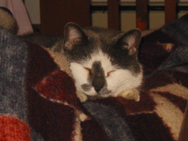 She travelled with us to a new home in a new town, became a house and yard kitty and eventually settled into retirement on a sunny cushion on the new porch or on the patio during the warm months. For the cold months, a sunny cushion on a chair or a blanket in a sun spot did the trick and her life consisted of relaxation and sunshine.