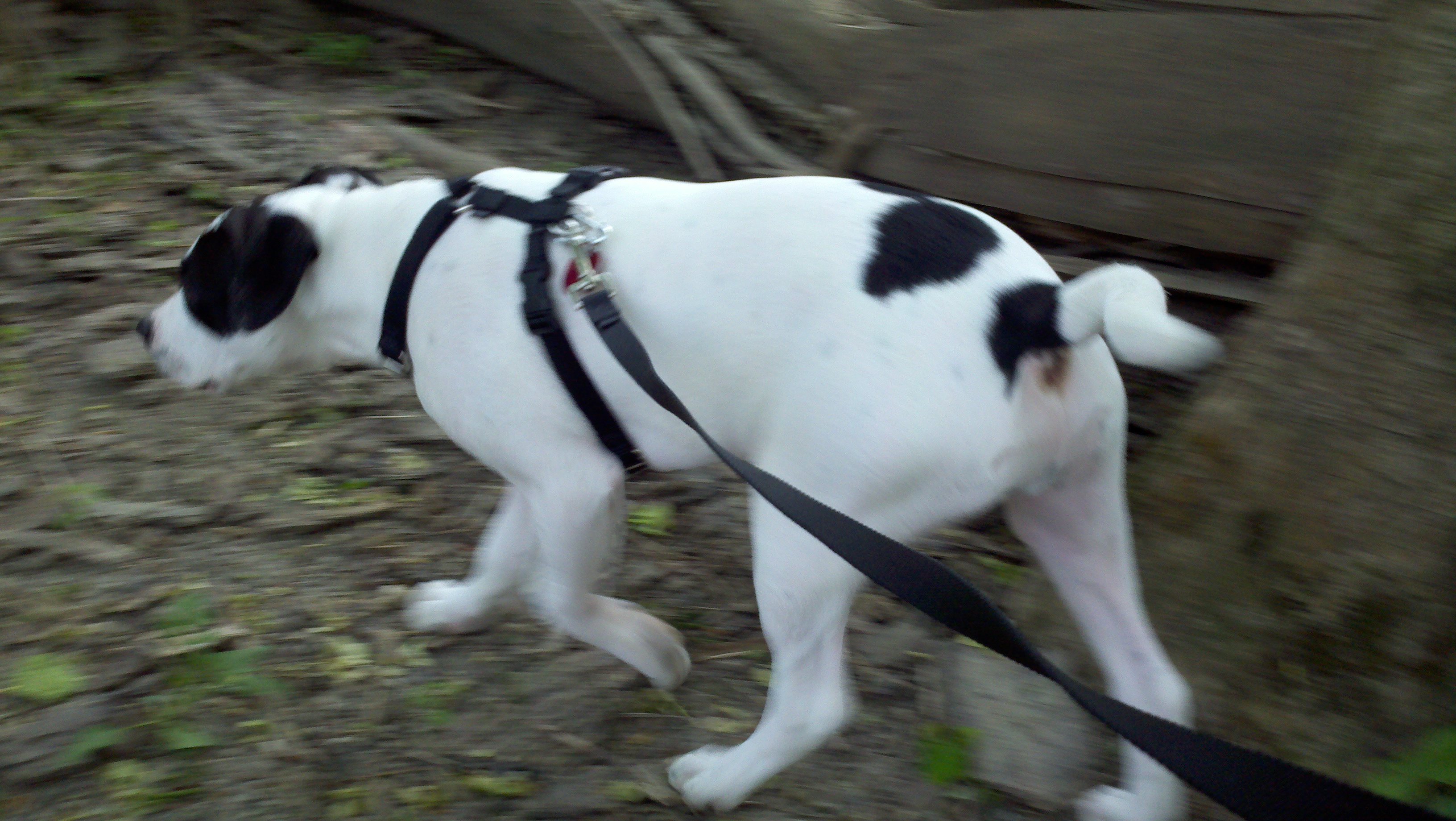 So, what to do about these walks that Ray and I have been taking? Naturally it’s one of the highlights of his day, but we strive to keep them low key and not elicit too much excitement. Why, just the mere sight of a collar or leash sends both boys into states of ecstasy so we have adopted a new phrase around the house that the boys have yet to add to their comprehension vocabulary and make us all feel oh-so-smart to boot.