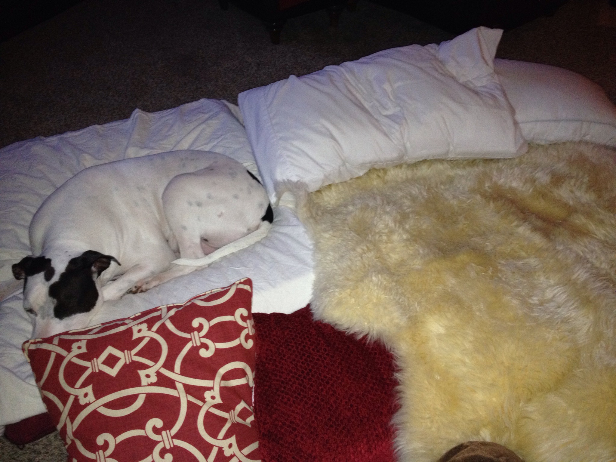 I captioned it to the effect that he shouldn’t be going up and down the stairs so we’ve set up camp on the living room floor and we’ve been touched by all of the well wishes and concern.
