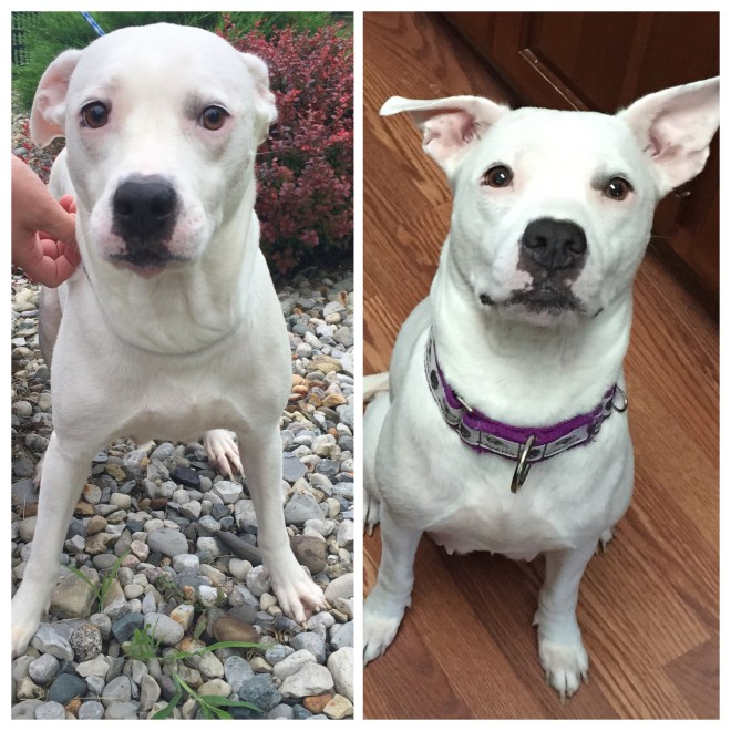 Last night I was thumbing through pictures on my phone all the way back (2 1/2 weeks!) to the day we brought Sugar and her babies into rescue. Toby was adopted and went home last Friday and the pictures his new parents post show how he is thriving with their love and care. Though I’m not surprised by that at all, I was shocked when I came upon Sugar’s intake photo.
