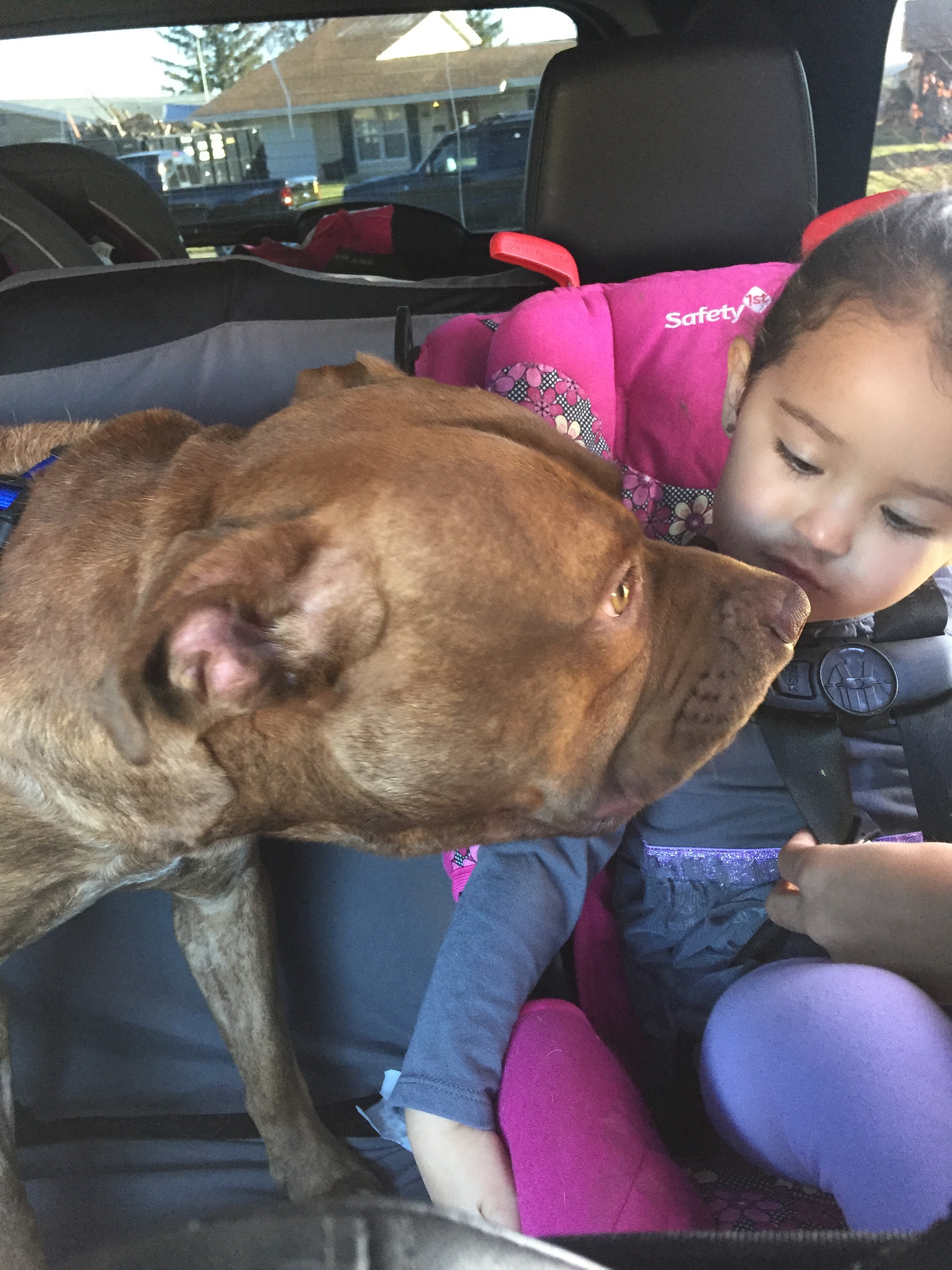 Lucky is about a year to a year and a half old and the prospective foster dogs didn’t want anything to do with a youngin’ so he sat at the shelter a few days longer until my sweet daughter stepped up. Asia has been on a break from fostering and we’ve tried a couple of dogs with Sugar who seemed unwilling to pay it forward and accept another foster sibling but we decided to give it a try. Sugar met with Lucky and it was completely uneventful so with happy hearts we loaded the two into cars and headed to Asia’s where Chance awaited. And completely took issue with another dog being near his mommy. Since we had another foster lined up for Lucky on Monday, Asia agreed to keep him overnight and on Saturday while running around some, we would deliver him back to the Coalition’s veterinarian’s office for the weekend.