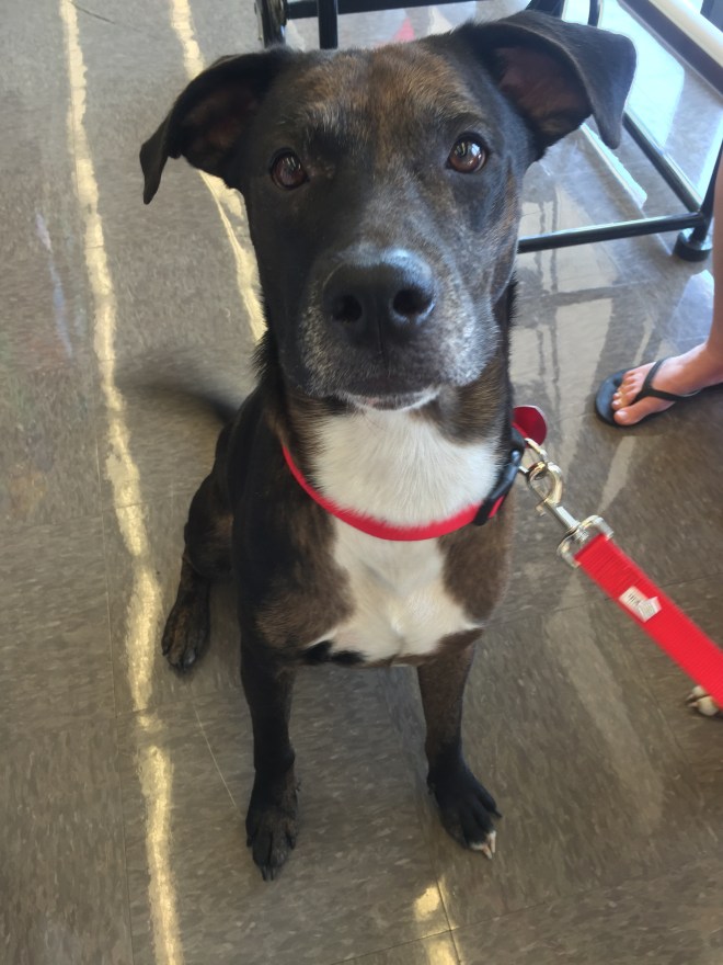 One of my “boxes” is that I facilitate the adoptions. I review and check applications, call applicants and set up meetings, so imagine my surprise when I called to let an applicant know she was approved and was told that she unexpectedly gained two foster dogs the previous evening. The trailer dogs had secured a foster with a potential adopter. She shared her worry about how to raise funds for the vetting that would be needed and how best to network these boys. In light of the new curve ball, the Pit Bull Coalition Board voted to help cover the cost of vetting and neutering, evaluate the dogs and if possible place them in our program. The only new snag is that these dogs are far from being very pit bull at all. They are sweet and friendly, good with kids and other dogs, but definitely your average mixed breed pit mutt.